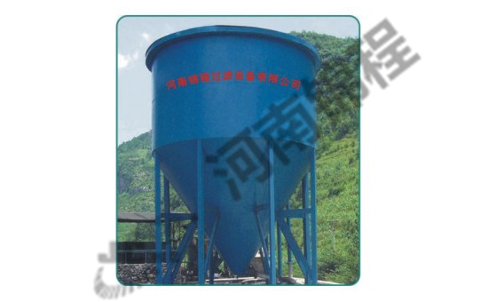 深錐濃縮機涉及有殼體、絮凝劑添加裝置、給料槽、穩(wěn)流圈、溢流槽、穩(wěn)流板、傾斜板、攪拌器、刮料器和排料裝置組成。所說的殼體是本實用新型所說的深錐濃縮機的主體支撐件,為上柱下錐的倒錐形結(jié)構(gòu)。在穩(wěn)流板的下面,即殼體的柱體部分的下部,錐形部分的上面設置有傾斜板。固體顆粒在沉降到傾斜板時,迅速沿傾斜板下滑,進入錐體部分。沉降路徑大大縮短,加快了沉降速度。使用本實用新型所述的深錐濃縮機,有效增大了沉降面積,加快了沉降速度,縮短了沉降時間,大大提高了生產(chǎn)效率。 SGN-3.5型深錐高效濃縮機(圖1)
