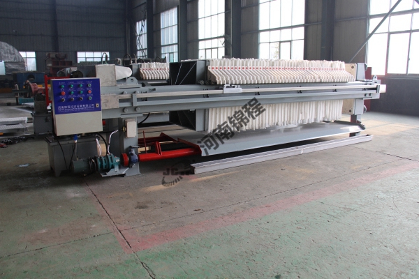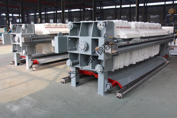 壓濾機在過濾過程中,由于濾布的毛細滲漏現(xiàn)象,濾板之間會有滴漏,這樣即對環(huán)境造成污染,又增加了壓濾機下面的儲泥斗中的泥料的含水率,給操作帶來很大麻煩。我公司設(shè)計的自動集液翻板系統(tǒng)可收集濾板滴漏的液體,避免壓濾機工作現(xiàn)場的污染,也避免了儲泥斗中的已脫水物料被浸潤。