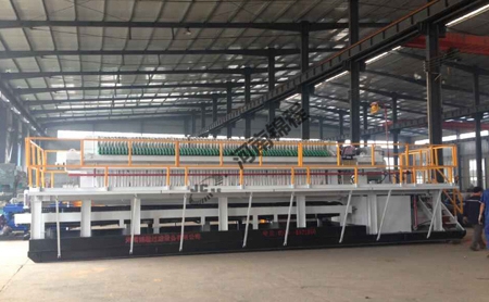 支撐整套設(shè)備裝置和重量,基架的重力使整臺(tái)裝置重心下降,增強(qiáng)了穩(wěn)定性,基架與地接觸面增大,減少了在松軟地面上的不均勻下沉,基架也提高了吊裝強(qiáng)度,保證了安全性。導(dǎo)料板、液壓站等均集中于基架上,布局合理,結(jié)構(gòu)緊湊,節(jié)省占地,使現(xiàn)場井然有序。